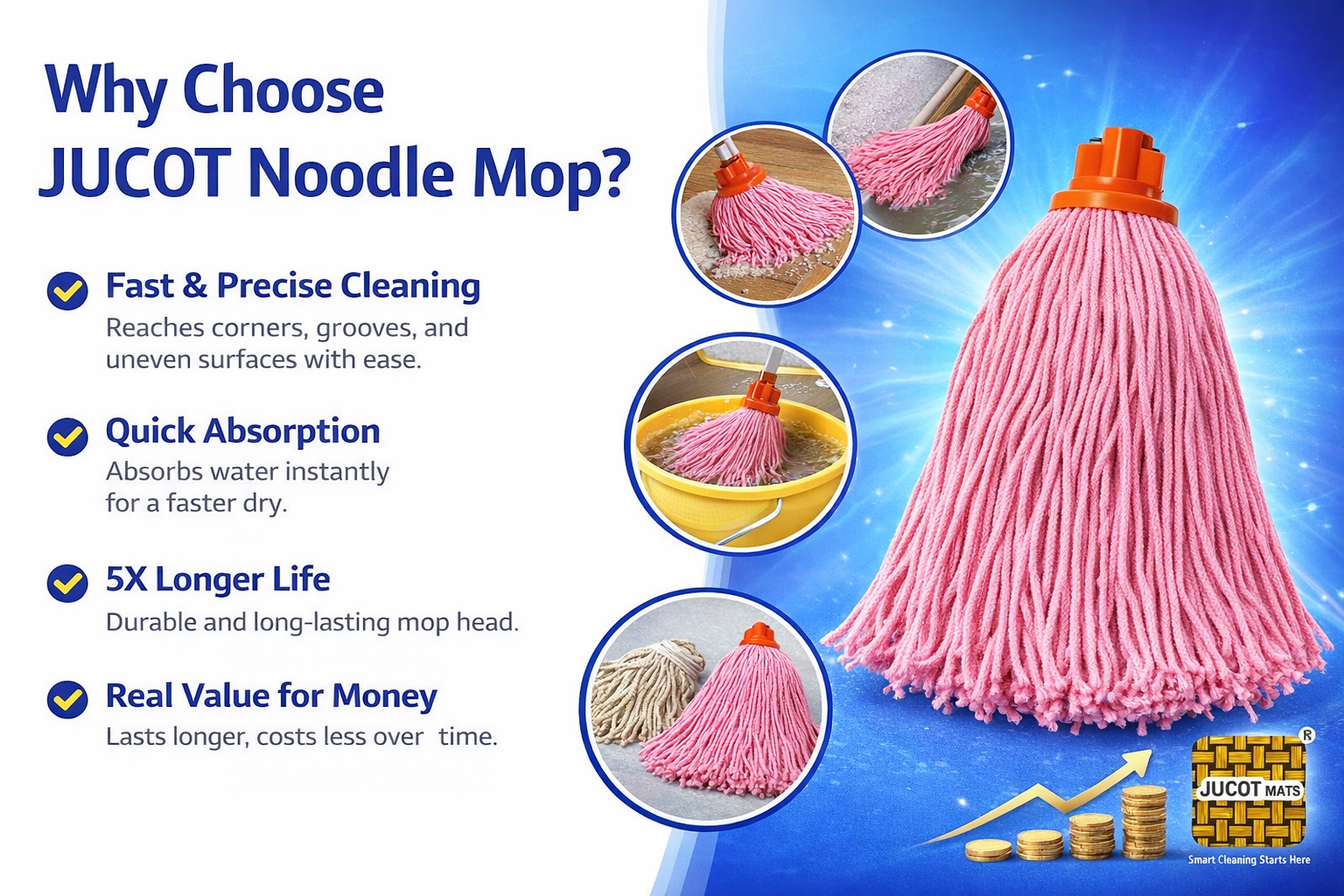 Clean smarter. Spend less. Experience faster, deeper, and more efficient floor cleaning with the JUCOT Noodle Mop—designed for homes and heavy-duty commercial use.